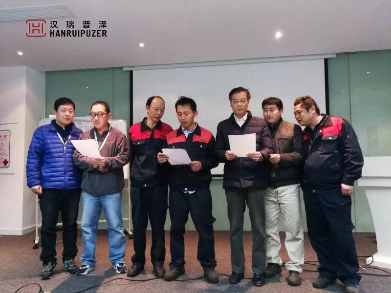 为实现提质增效,提高市场竞争力。2018年3月12日,汉瑞普泽召开精益管理启动会议,介绍精益思想,按人才发展组,全流程管理与数据管理组,课题改善组,目视化组四个小组全面部署2018年精益管理工作安排,签署立项书并宣誓完成的决心。