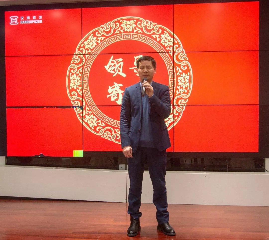 接着,公司董事长岳文晰女士致新年贺词,岳董说公司秉承产品质量为企业的生命,坚持以客户为服务中心,坚守信用,合作共赢。希望全体员工共同努力,借精益管理之风,攻城略地 、开疆拓土,让汉瑞普泽在竞争激烈的当今,诚凭心鉴,大浪淘金,发挥亮剑精神,圆满完成2019年各项公司目标。