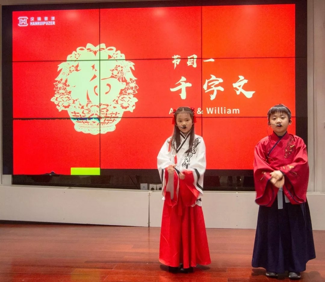 年会中,大家一起欢歌载舞,尽显汉瑞普泽员工多才多艺。少年强则国强,中华文化博大精深,我们身为中华儿女而骄傲。年会伊始,两位可爱的小宝贝(岳董的女儿及其同学)为大家演绎了《千字文》,以歌舞形式演绎了中华民族有关自然、社会、历史、教育、伦理等千年文化的发展,让我们领略了中华民族文字之美、历史之美。