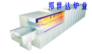 米。前后分别有进料系统与出料系统。炉体分成4节制作,方便运输与设备入场。进出料台面为不锈钢材质,防止物料摆放摩擦污染与划伤影响美观。炉体周围全部装有防护挂板,外壳全部采用烤漆,外形仿造美国进口设备,做工细致,整体外观美观大方。