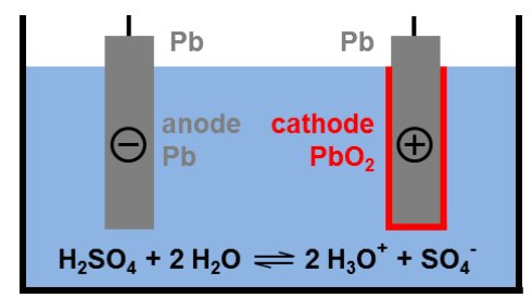 铅酸蓄电池的主要成分是由铅制成的阳极、由二氧化铅制成的阴极和作为电解质的稀硫酸 (H2SO4)。