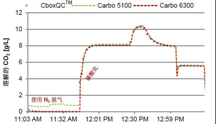 只有安装在脱气罐之后和灌装之前的 Carbo 6300 才能监测到 CO2 含量。Carbo 6300 不受其他溶解气体的影响