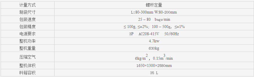 本机与计量配置可自动完成计量、送料、充填制袋、日期打印、充气(排气)、成品输送的全部包装过程,并自动完成计数。适用于包装奶粉、蛋白粉、固体饮料、白砂糖、葡萄糖、咖啡粉等