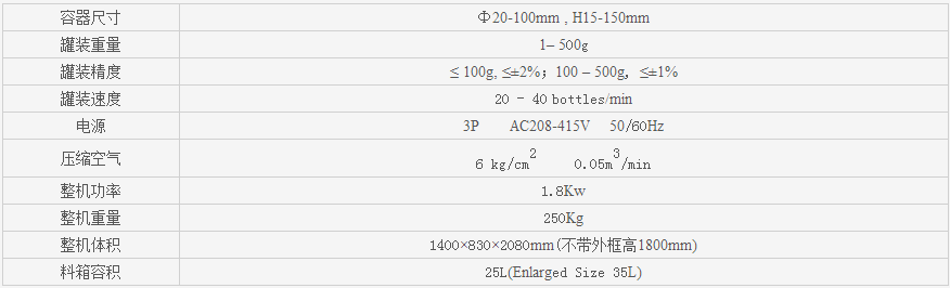 该系列罐装机能完成喂罐、托罐、充填计量、称重选别等工作,可与其它设备配套组成整套罐装流水线,适用于充填眼影粉、闪粉、胡椒粉、辣椒粉、奶粉、米粉、蛋白粉、豆奶粉、鸡粉、咖啡粉、药粉、添加剂、香精香料等。