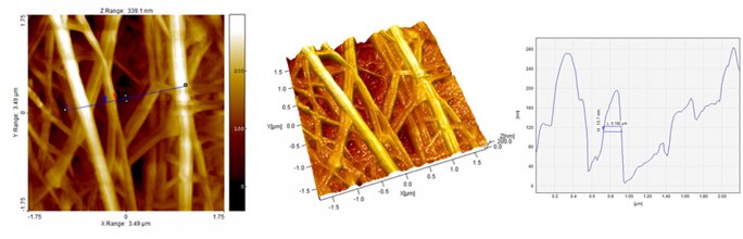 由于研发与制造技术随着需求持续的进步,伴随着分析技术的考验也随之而来。分析技术中最直觉与方便的莫过于影像分析,可直接性的显影出织物表面形貌与特性。过去在纺织工业中较常使用的影像分析技术为扫描式电子显微镜(SEM),但因其严苛的样品制备与繁琐的真空步骤,使得影像分析一直是纺织工业面临到的分析瓶颈,再加上随着复合机能性的需求日渐提高,其必会无法解析奈米等级的影像需求。而原子力显微镜由于其直接式的量测特点与独有的3D影像,无须真空与复杂的样品前处理,并提供原子级的影像分辨率,会将是纺织工业中判断织物表面影像的一项分析利器。