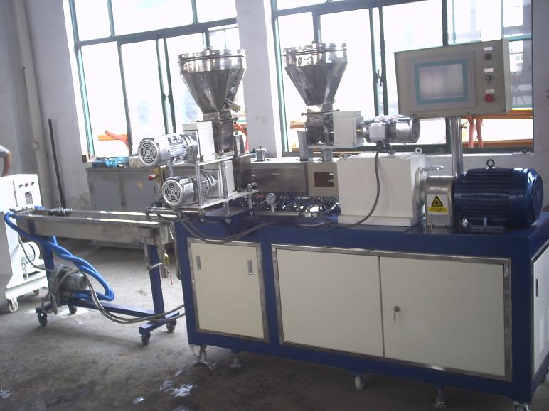 11、采用水冷拉条切粒机头,机筒加热功率:5kW,机头温控区的加热功率为0.4 kW。机头处设熔压、 熔温传感器。