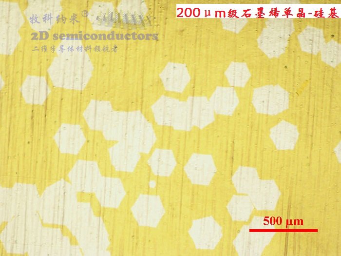 目前制备高质量石墨烯的方法,有胶带剥离法、碳化硅或金属表面外延生长法和化学气相沉积法(CVD),前两种方法效率低,不适于大量制备。而迄今由CVD法制备的石墨烯,一般是由纳米级到微米级尺寸的石墨烯晶畴拼接而成的多晶材料。 石墨烯优异的电、光、强度等众多优异性质使其在电子学、自旋电子学、光电子学、太阳能电池、传感器等领域有着重要的潜在应用,但大规模高质量制备技术是制约其进入实际应用的瓶颈之一。 牧科纳米技术团队经过长时间的技术攻关,不用昂贵的金属基体,在常见的铜衬底,以低浓度甲烷和高浓度氢气通过常压CVD法,成功制备出了100微米到几个毫米级六边形单晶石墨烯及其构成的石墨烯薄膜。而且可以转移到任意衬底上,方便取用。 该方法转移的单晶石墨烯具有很高的质量,将其转移到Si/SiO2基体上制成场效应晶体管,测量显示该单晶石墨烯室温下的载流子迁移率可达7100cm2 V-1s-1。 常见的铜基体上生长大尺寸单晶石墨烯及其薄膜技术的突破,为石墨烯基本物性的研究及其在高性能纳电子器件、透明导电薄膜等领域的实际应用奠定了材料基础。 石墨烯单晶表征数据: 200um级别石墨烯单晶在铜衬底上的光学显微镜照片: