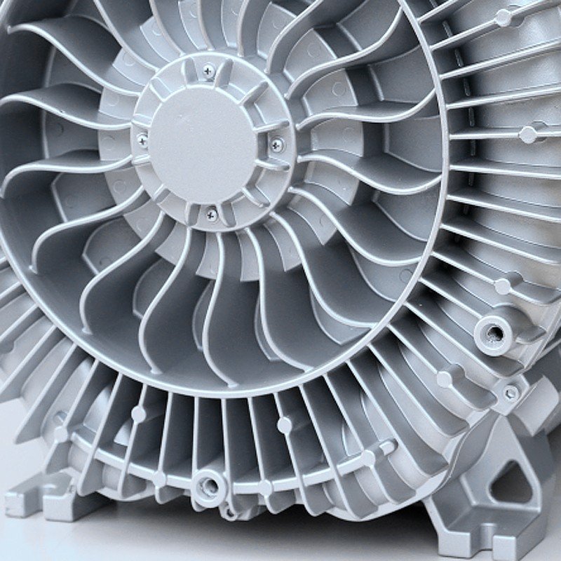 旋涡气泵的叶轮由数十片叶片组成,它类似庞大的气轮机的叶轮。叶轮叶片中间的空气受到了离心力的