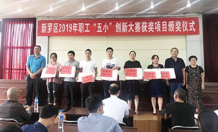 2019年10月14日,龙岩市新罗区2019年职工“五小”创新大赛获奖项目颁奖仪式上,龙岩市山和机械制造有限公司的一种纳米钙解聚工艺及装置项目、高效排渣的干式粉碎盘项目同时斩获三等奖。我司办公室张主任出席并登台领奖。
