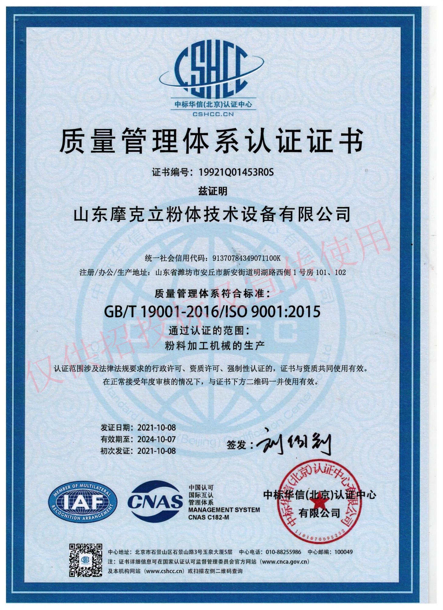 喜讯;热烈祝贺我公司获得质量管理体系认证证书ISO9001:2015