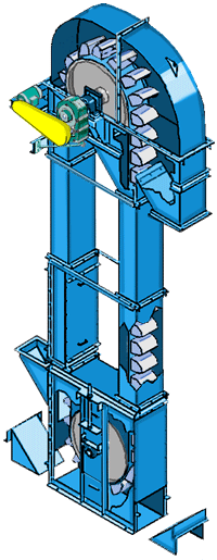 一.斗式提升机分类:斗式提升机是利用均匀固接于无端牵引构件上的一系列料斗,竖向提升物料的连续输送机械。分为环链(TH斗式提升机)、板链(NE斗式提升机)和皮带(TD斗式提升机)三种。