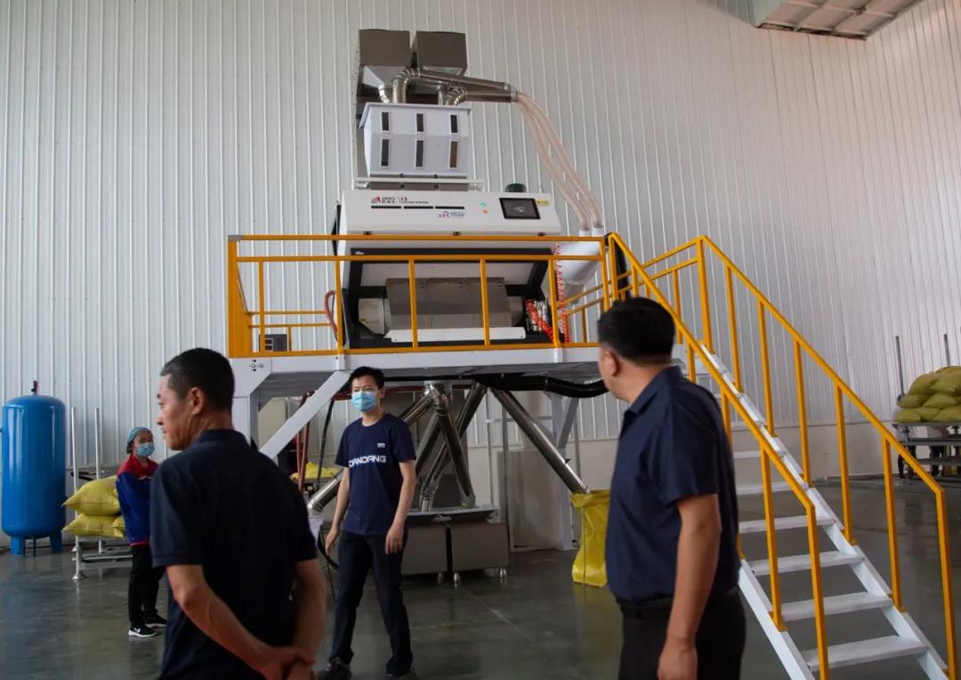 本次品鉴会亮相的两款红外光谱 I 系列仁壳分离专用色选机产品功能强大、效果非常,来宾现场聆听设备详细介绍,验证设备色选效果。