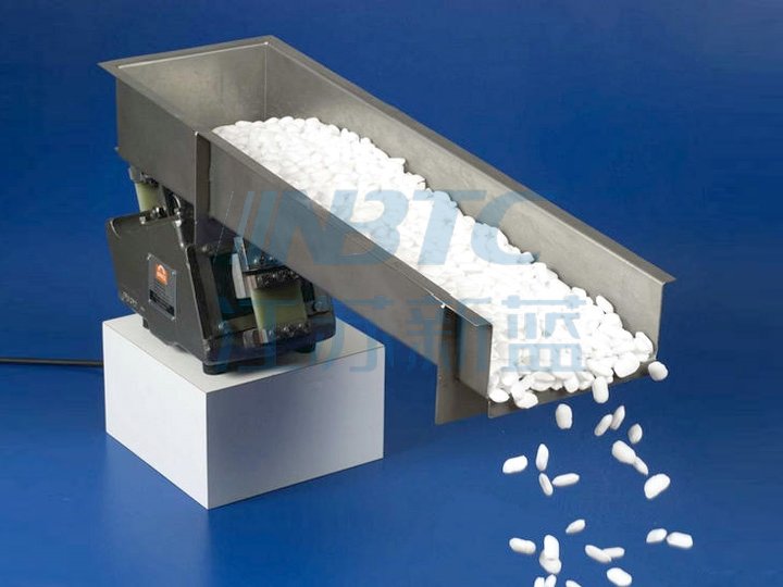 产品特点: 振动给料机在生产流程中,可把块状、颗粒状物料均匀、连续地给到受料装置中去进行均匀地喂料,并对物料进行粗筛分,广泛用于饲料、农资、冶金、煤矿、选矿、建材、化工、磨料等行业的破碎、筛分联合设备中。 振动给料机 (喂料机)性能特点:振动平稳、工作可靠、寿命长;可以调节激振力,可随时改变和控制流量,调节方便稳定;振动电机为激振源,噪声低、耗电小、调节性能好,无冲料现象。结构简单、运行可靠、调节安装方便、重量轻、体积小、维护保养方便,当采用封闭式结构机身时可防止粉尘污染。