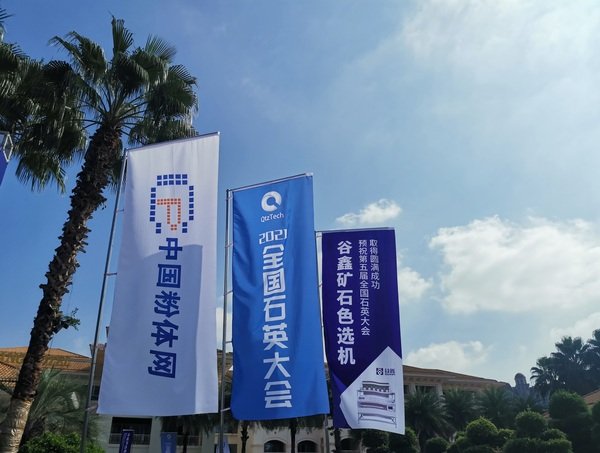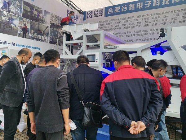 驱车800多公里,下午准时到达美丽的赣州锦江国际酒店,酒店主要干道布满了谷鑫矿石色选机的道旗,主入口处是显目的谷鑫公司的拱门,刚到设备参展现场,就有来自全国各地的矿业老板带料现场色选,客户对我们谷鑫牌石英石颗粒机和石英砂色选机给予高度的评价和认可!当场就有部分客户确定采购设备的意向,非常感谢中国粉体网举办的这次会议!同时也感谢一直以来支持我们谷鑫公司的新老客户。
