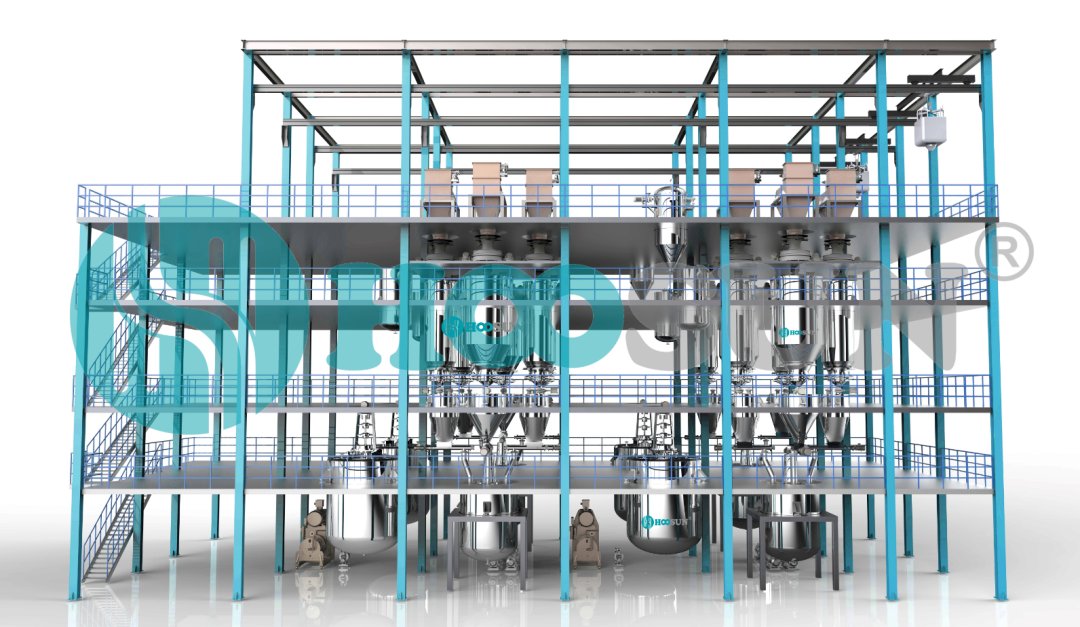 在智能化产线方面,琥崧创新性提出3F(fast,future,flexibility)柔性工厂模式,为锂电材料企业提供三维设计建模,模拟生产流程服务,系统智能化控制,让生产更智能、更高效、更环保。