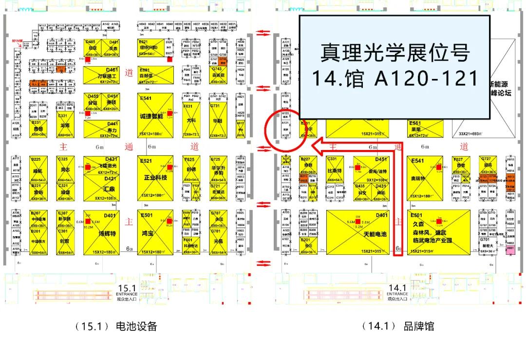 观众可参考上图及本页内容底部附图的箭头指示方向方便查找真理光学的展位位置。