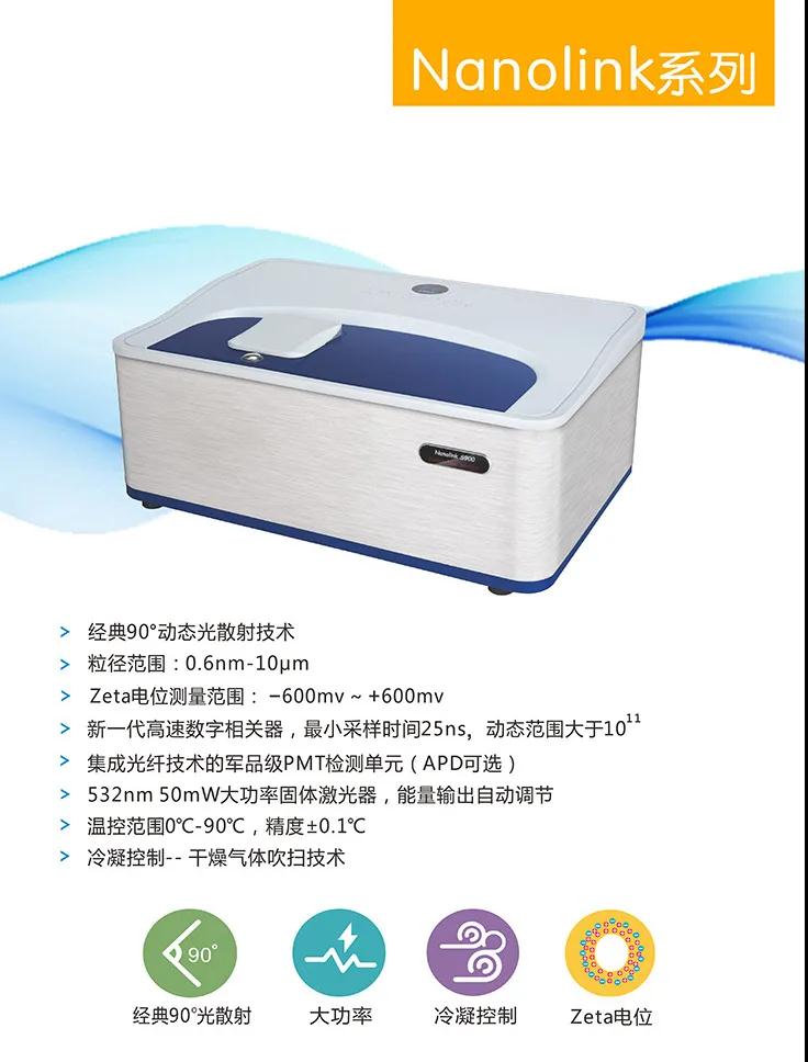 Nanolink系列Zeta电位及纳米粒度仪则为锂电池研发前沿技术中应用的纳米硅、纳米电解液等纳米材料的粒径分析和胶体分散体系Zeta电位提供有效和颇具性价比的解决方案。