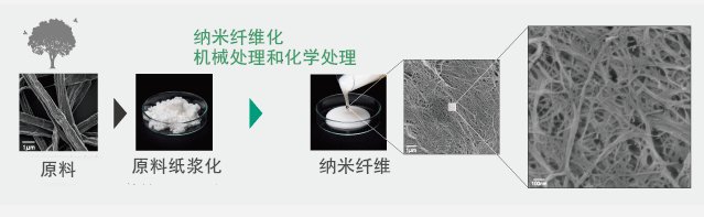 我们的优势之一是,我们可以使用独特的超高压分散粉碎制造方法,使用不同的原材料制造纳米纤维。