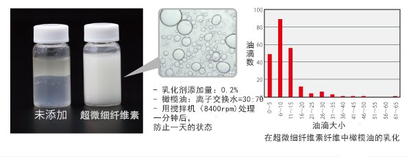 作为具体例子,示出了橄榄油的乳化状态。它被均匀地乳化,并且乳化状态持续很长时间。