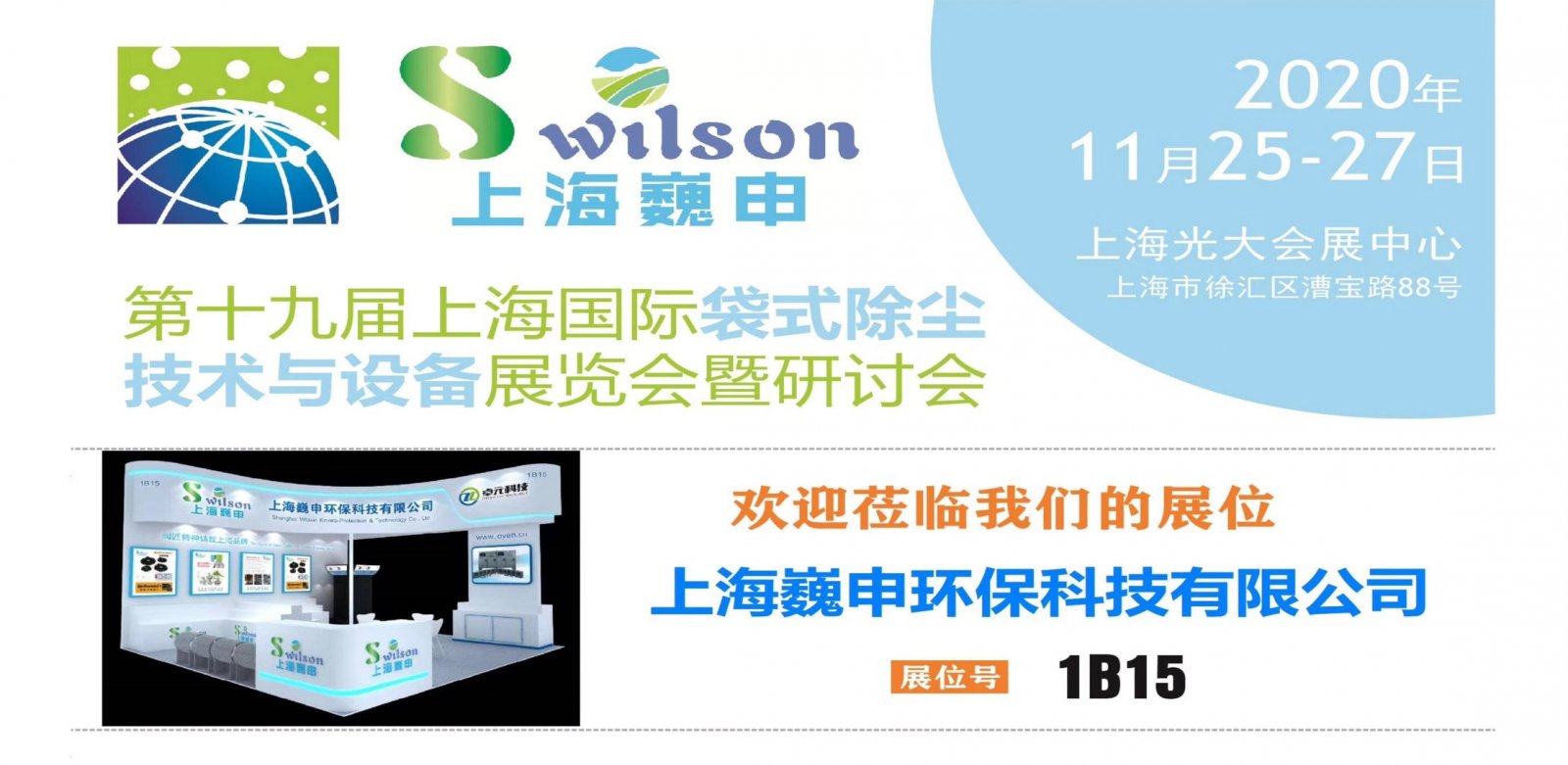 2020第十九届上海国际袋式除尘技术与设备展览会暨研讨会将于2020年11月25日27日在上海光大会展中心举行,上海巍申环保科技有限公司携防污型三膜片脉冲阀、粉尘和气体双防脉冲阀解决方案在1B15展位等您!