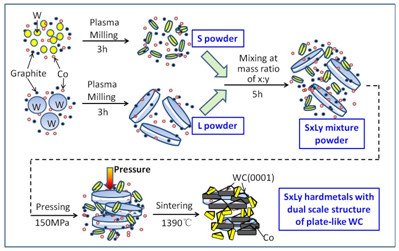 图8:等离子球磨技术制备双尺度板状WC-Co硬质合金工艺路线