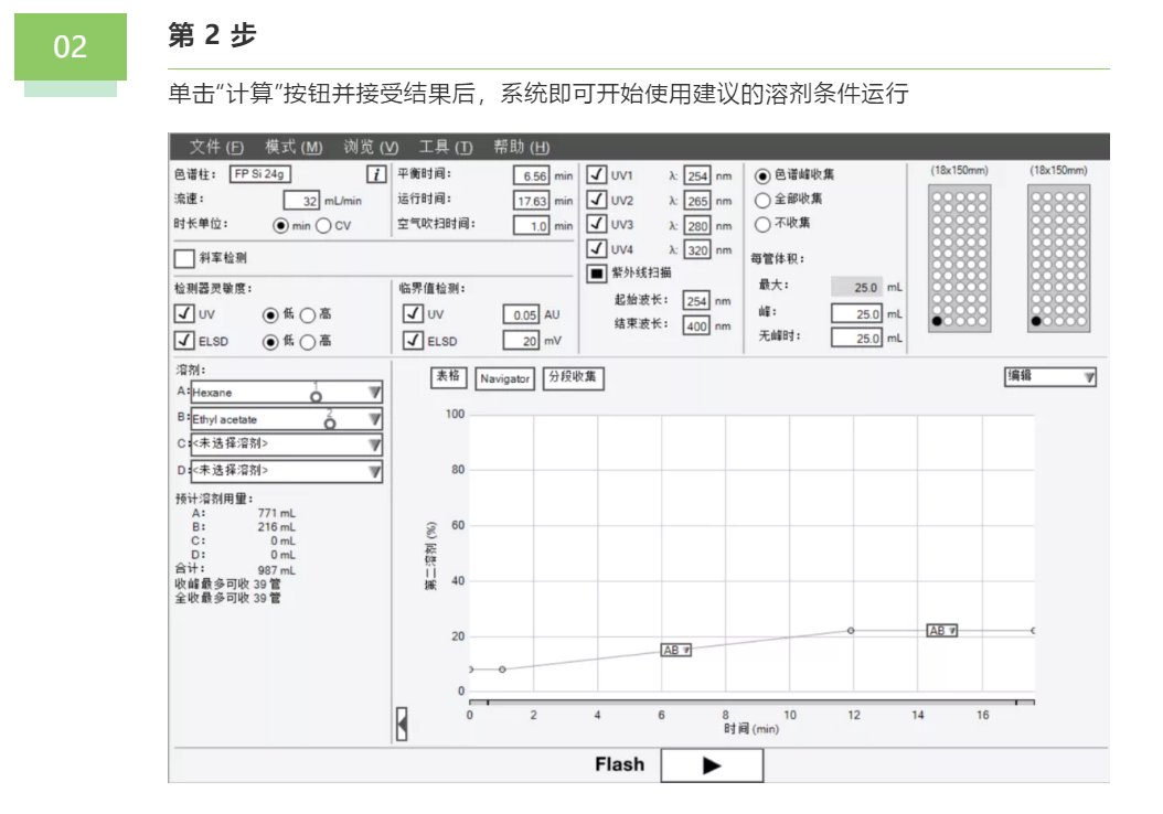 通过 Navigator 软件功能,在运行结束时,获得了化合物的最佳分离和收集。