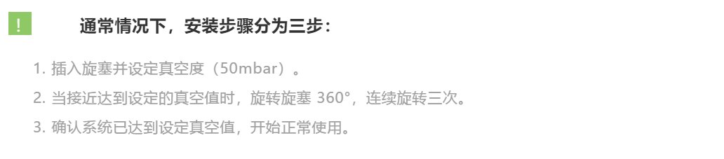 优秀的玻璃加工工艺可以弥补玻璃接口间的缝隙,使得整个旋转蒸发仪系统无需涂抹真空硅脂就能获得理想的真空值。但是,冷凝器上的玻璃旋塞又是另一个使人头疼的问题。在我们使用无真空值调节功能的真空源,如水泵时,需要转动玻璃旋塞来进行曝气。或者当我们用上样管把大量样品溶液抽入蒸发瓶时,也需要通过转动玻璃旋塞来实现。