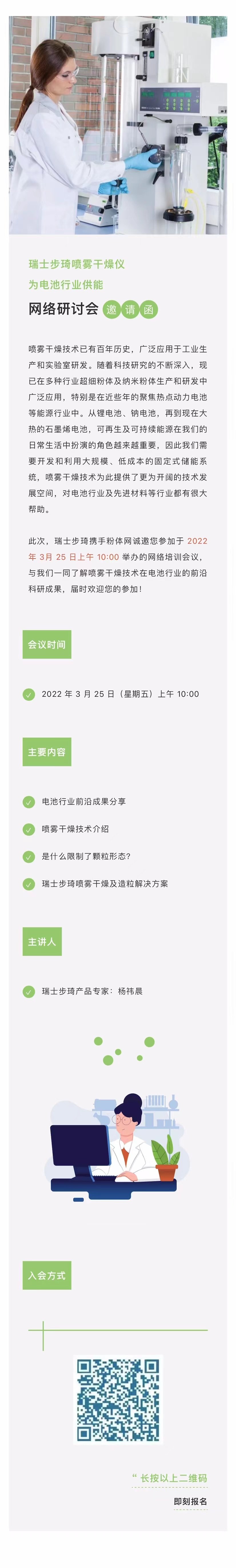 网络研讨会:瑞士步琦携手粉体网,喷雾干燥仪为电池行业供能!