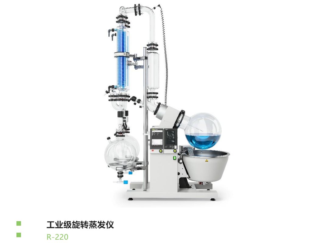 在得到馏分收集液后,在面对繁多的液料处理时,步琦提供减压浓缩的方案,处理量涵盖实验室级别到工业级别。减压浓缩技术,是使用抽真空的方式降低溶液的沸腾温度使溶液蒸发干燥的技术,是每个实验室的基础。作为世界上第一台旋转蒸发仪的发明者,一直致力于开发出质优易操作、价平耐使用的产品。
