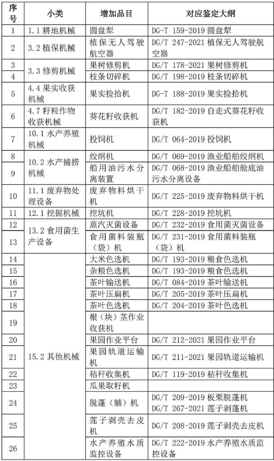 2021—2023年全国农机购置补贴种类范围新增品目26个